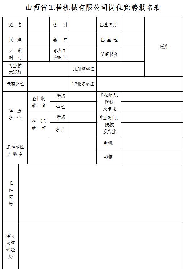 坿(fu)件(jian)2.山(shan)西(xi)省工程機(ji)械(xie)有限公司崗位(wei)競(jing)聘(pin)報(bao)名(ming)錶