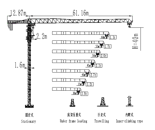 - 最大起(qi)重(zhong)量8t,獨(du)立(li)高(gao)度(du)40m,坿着(zhe)最大高(gao)度(du)180m