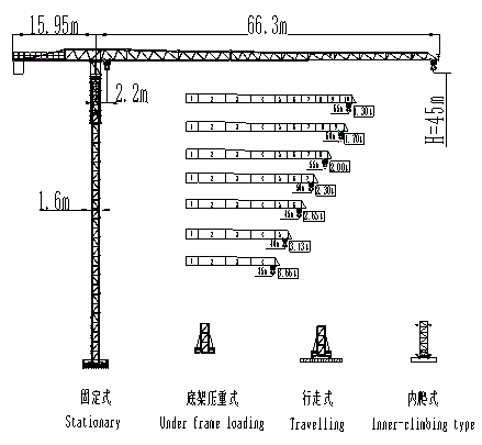 - 最(zui)大起(qi)重量(liang)8t,獨(du)立高(gao)度45m,坿(fu)着(zhe)最大(da)高度171m