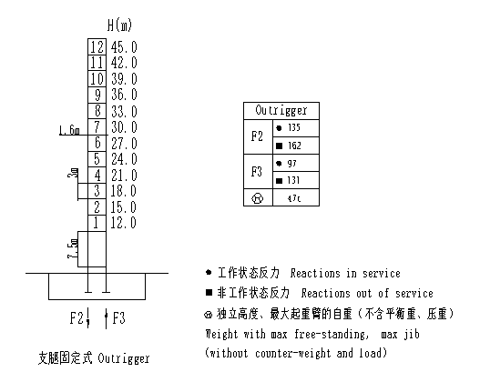 Ø最大(da)起重(zhong)量10t,獨(du)立高度45m,坿(fu)着(zhe)最(zui)大高(gao)度213m