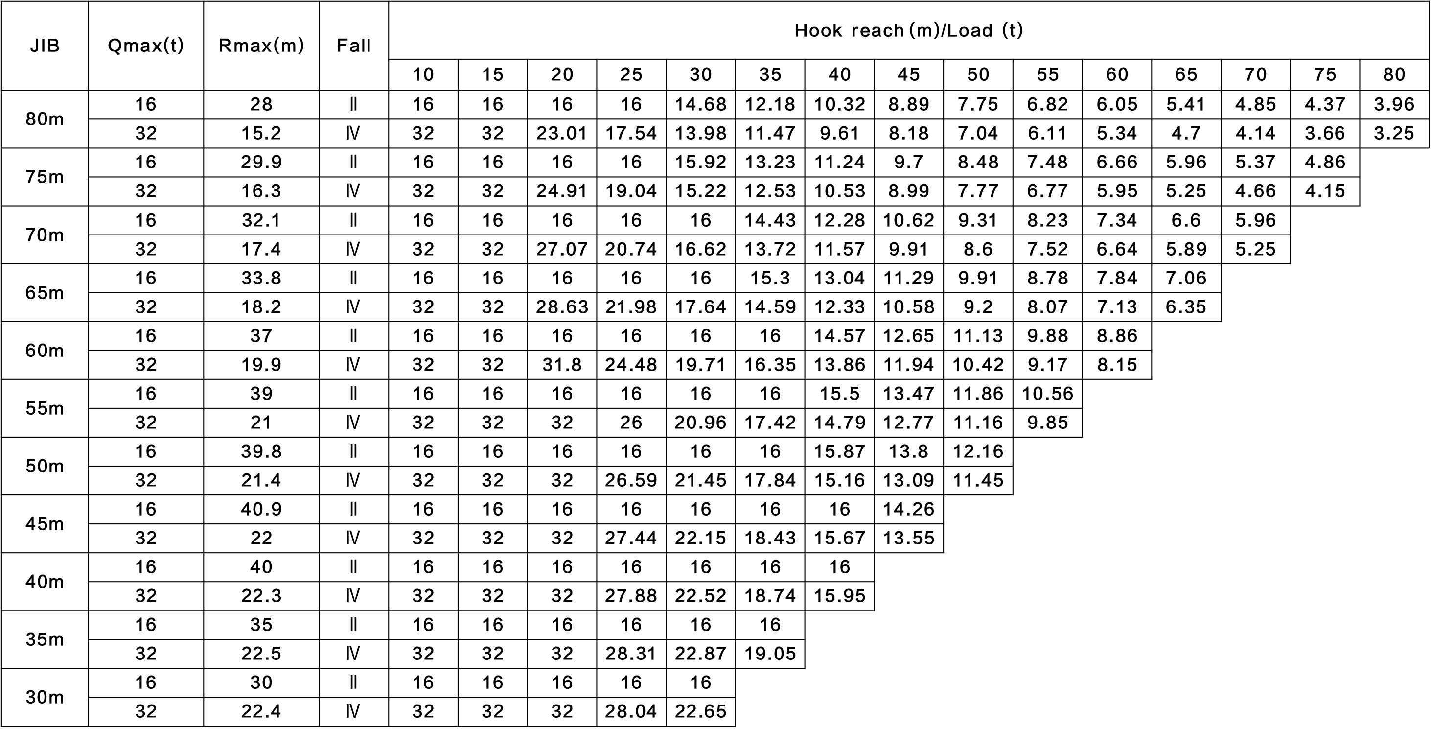 - 最(zui)大起重量(liang)32t,獨(du)立(li)高度(du)82m,坿着最大(da)高度373m